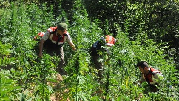İZMİR'in Beydağ İlçesi'nde operasyon düzenleyen jandarma ekipleri, kamuya ait arazide 4 bin 210 kök kenevir bitkisi ve 2 bin 700 gram esrar ele geçirdi.