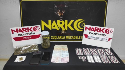 Ödemiş Narkotik Grup Amirliği ekipleri, ilçede bulunan bir adreste R.İ. adlı bir kadın ve oğlu C.İ.'nin birlikte uyuşturucu ticareti yaptığı bilgisi üzerine harekete geçti. Ekiplerin adrese düzenlediği operasyonda 2 şüpheli de kıskıvrak yakalanarak gözaltına alındı. Adreste yapılan aramada, çok sayıda yeşil reçeteye tabi sentetik ecza, 440 gram esrar, 2 adet telefon ve uyuşturucu ticaretinden elde edilen paralar ele geçirildi. Gözaltına alınan şüpheliler, işlemleri için emniyete götürüldü.