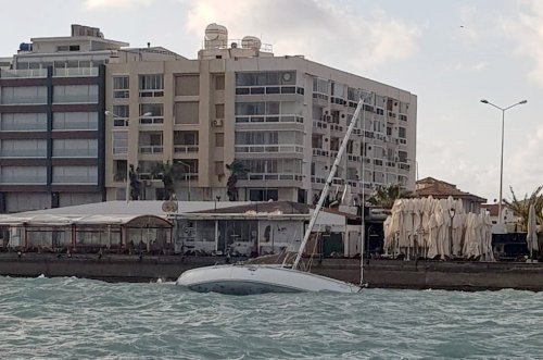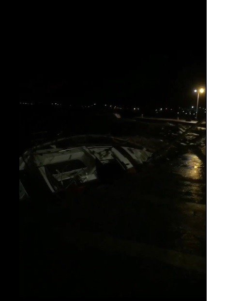 Dalgaların etkisiyle yan yatan ve karaya çarpan teknenin direği de, sahildeki aydınlatma direğinin lambası kırdı. Öte yandan, kuvvetli rüzgar nedeniyle bazı teknelerinde birbirine çarptığı öğrenildi.