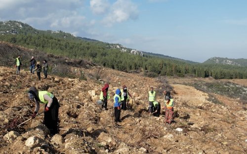 Gaziemir Orman İşletme Müdürlüğü görev alanı içinde yer alan Menderes Çile ve Urla Balıklıova'da çıkan yangınlarda kül olan toplam 580 hektarlık alanda, ağaçlandırma çalışmaları aralıksız sürüyor