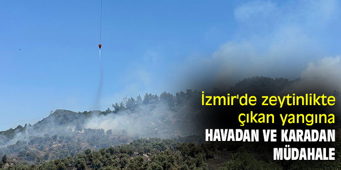 İzmir'de zeytinlikte çıkan yangına havadan ve karadan müdahale