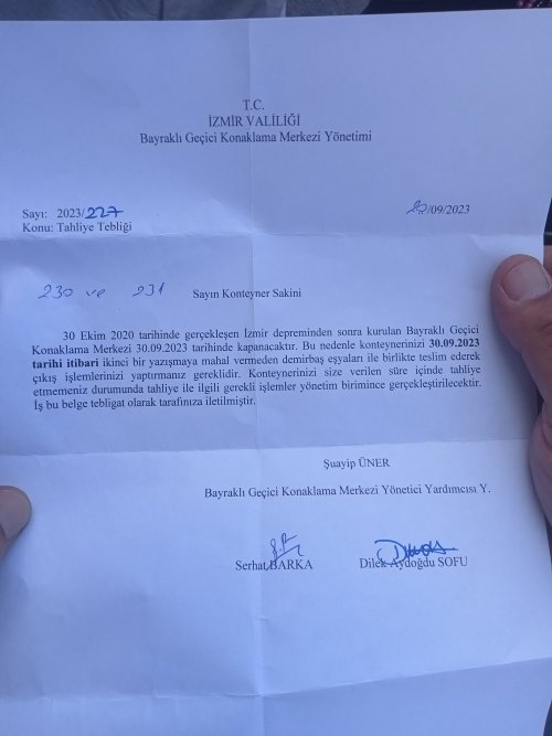 30 Ekim 2020'de İzmir'de meydana gelen ve 117 kişinin hayatını kaybettiği depremin ardından, Bayraklı'da kurulan İzmir Valiliği AFAD Bayraklı Geçici Konaklama Merkezi'nin 30 Eylül tarihinde tamamen kapatılacağı öğrenildi. Konaklama Merkezi Yönetimi tarafından, konteyner kentteki depremzedelere tebliğ edilen belgede, konteynerleri tahliye etmeleri istendi. Çoğunluğunu Kahramanmaraş'taki depremden etkilenen vatandaşların oluşturduğu merkezdeki sakinler, kendilerine bir alternatif sunulmamasından yakındı.