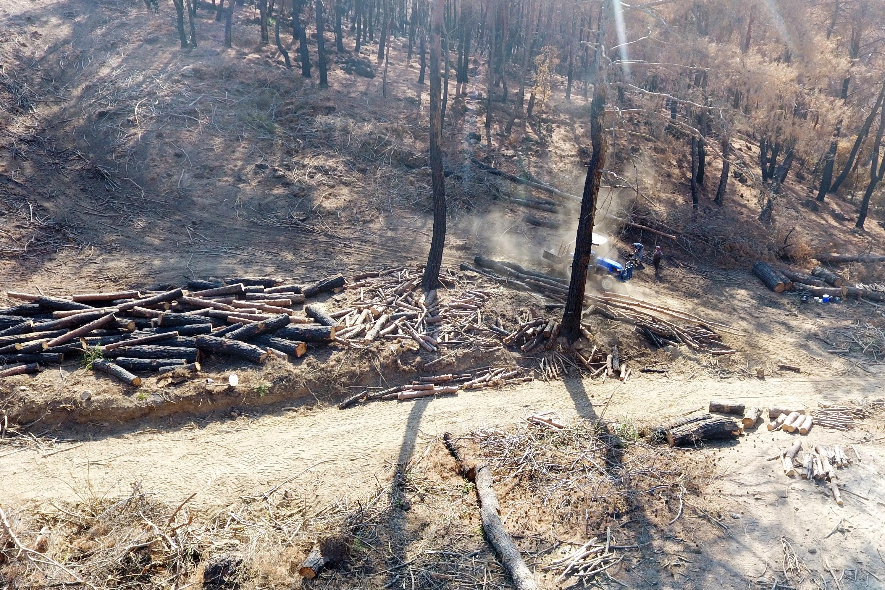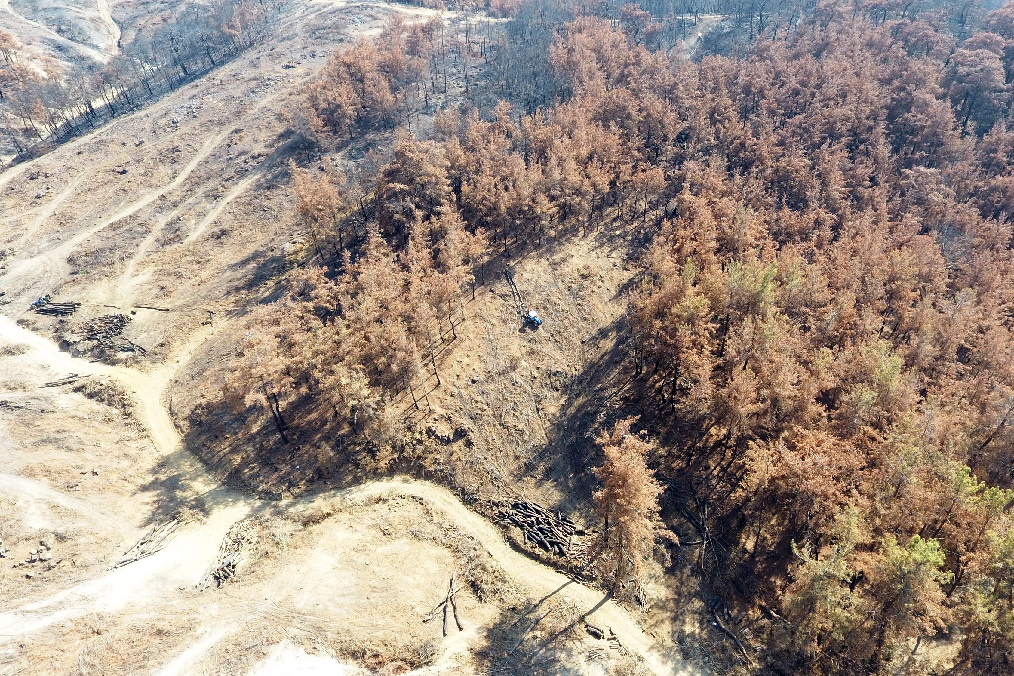 İzmir'in Menderes ilçesinde geçtiğimiz 1 Temmuz'da makilik alanda başlayan ve rüzgarın etkisiyle ormanlık alana yayılan yangın, 986 hektarlık bir alanı küle çevirdi. Tahrip olan ormanı eski haline döndürmek için çalışmalara başlayan İzmir Orman Bölge Müdürlüğü ekipleri, yanan ağaçları belirleyerek bölgede boşaltma çalışmalarına başladı.