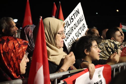 Çocukların ve kadınların katıldığı miting, saygı duruşu ve İstiklal Marşı'nın okunmasıyla başladı. Mitinge katılan vatandaşlar, ellerinde 'İsrail Filistin' den defol' ve İsrail'i kınayan yazıların yazdığı çeşitli pankartları taşırken, gözyaşları eşliğinde 'kahrolsun İsrail' sloganları attı.