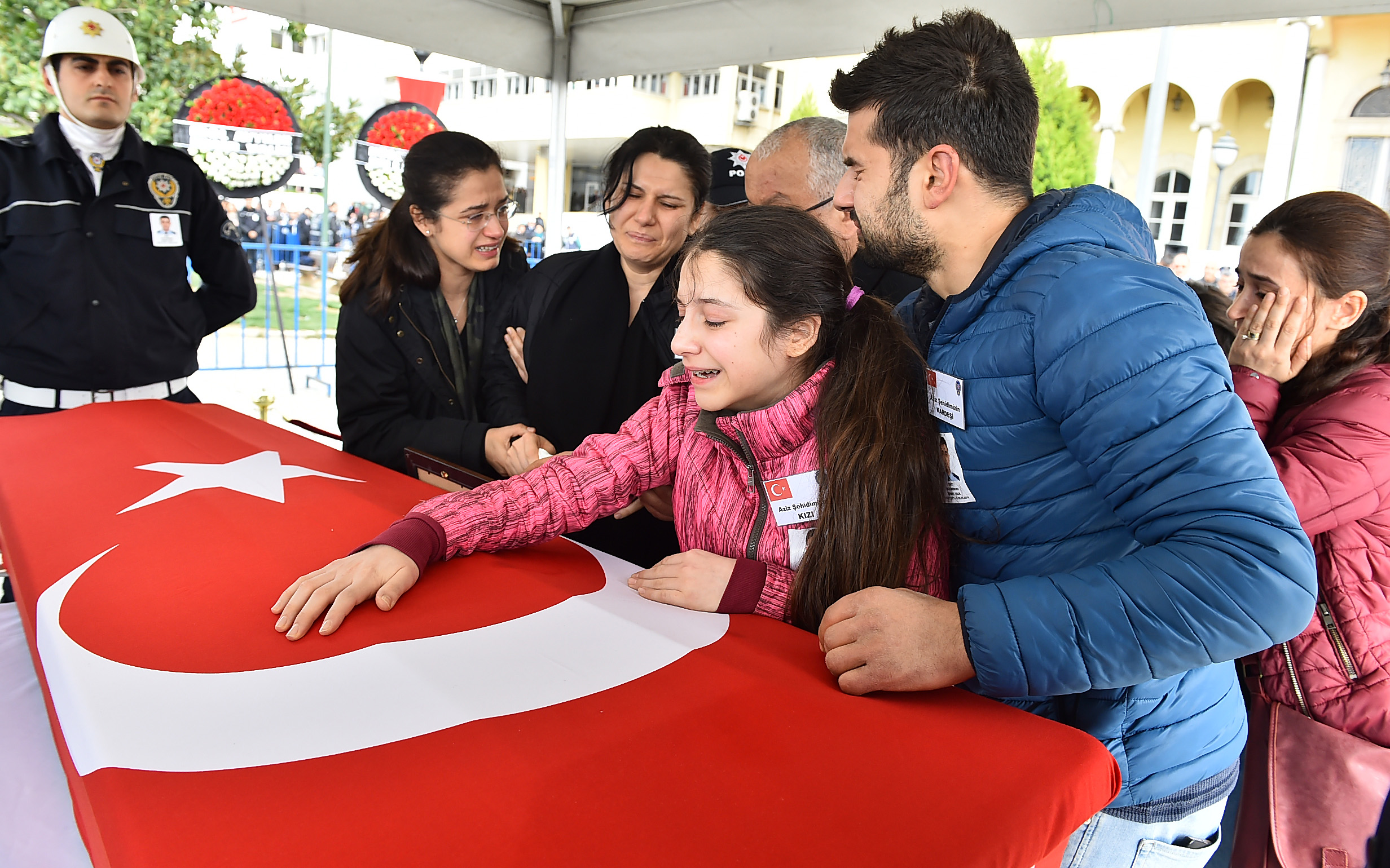 Şehit polis Mehmet Çelik için İzmir Valiliği önünde yapılan törende hüzün ve gözyaşı vardı.