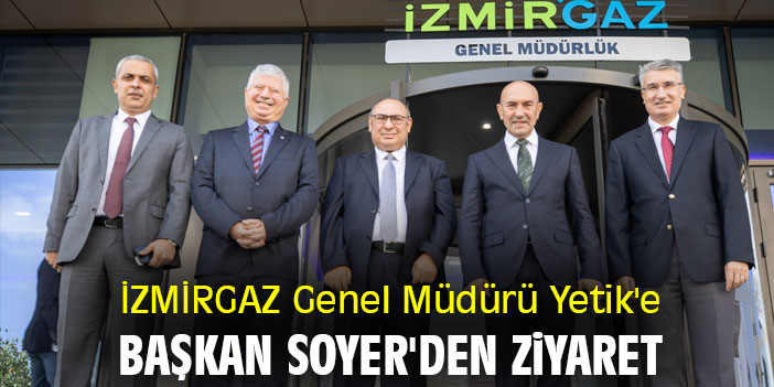 İzmir Büyükşehir Belediye Başkanı Tunç Soyer'in Konak ilçesi Çınarlı Mahallesi’nde yeni binasında hizmet vermeye başlayan İzmir Doğalgaz Dağıtım A.Ş (İZMİRGAZ) Genel Müdürü Ahmet Yetik'e gerçekleştirdiği ziyarette İzmir Büyükşehir Belediyesi Başkan Vekili Mustafa Özuslu, İZMİRGAZ Genel Müdür Yardımcıları Cebrail Özdemir ve Murat Ceran da yer aldı.