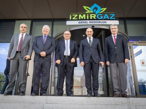 İzmir Büyükşehir Belediye Başkanı Tunç Soyer’i yeni binalarında ağırlamaktan duyduğu mutluluğu ifade eden İZMİRGAZ Genel Müdürü Ahmet Yetik, leed sertifikasına (yeşil bina) sahip binanın özellikleri hakkında bilgilendirmelerde bulundu. Başkan Soyer, İZMİRGAZ yöneticilerine ve çalışanlarına yeni hizmet binasının hayırlı olmasını diledi.