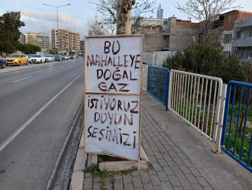 Bayraklı Adalet Mahallesi sakinlerinin doğalgaz isyanı pankart ve tabelalara yansıdı. İzmir’in ilk kurulduğu yer olan Smyrna Antik kentinin ve meydanının bulunduğu bölgeye hala doğalgazın gelmemesi mahallede oturanları isyan ettirdi. “İzmir’in ilk kurulduğu yerde oturuyoruz. Ama böylesine önemli ve değerli yerde hala çağdaş hizmet alamıyoruz! Büyükşehir Belediyesi, Bayraklı Belediyesi ve İzmirGaz’dan bugüne kadar halkımız için atılan bir adım görmedik. Görmezden gelinmekten artık bıktık. Artık sorunumuza çare bulunmasını ve bize de doğalgaz hizmeti verilmesini istiyoruz” diyerek isyanlarını dile getiren mahalle sakinleri önümüzdeki günlerde yetkililerin makamlarına çıkacak.