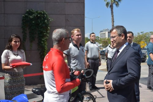 İzmirli bisikletçi Orhan Kotluk, İzmir Adliyesine düzenlenen terör saldırısında şehit düşen polis memuru Fethi Sekin'in anısına bin 570 kilometrelik bisiklet turuna çıktı.