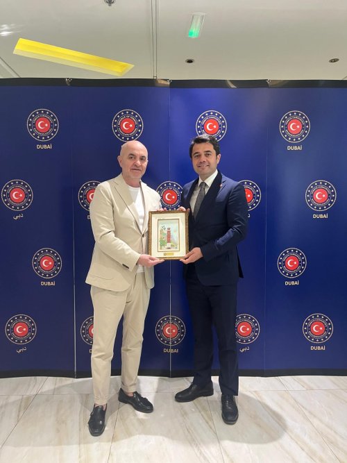 İzmir heyetinin ilk durağı T.C. Dubai Başkonsolosluğu oldu. Dubai Başkonsolosu Onur Şayan ve Ticaret Ataşesi Muhammed Emin Erkal’ın ev sahipliği yaptığı görüşmede, İzmir ve Dubai arasında gelinlik, damatlık ve abiye sektörü özelinde ticari iş birliklerinin artırılması amacıyla görüş alışverişinde bulunuldu. Başkonsolos Şayan ile ve Ticaret Ataşesi Erkal, Birleşik Arap Emirlikleri moda pazarı, tüketici beklentileri, ithalat düzenlemeleri ve sektörel fırsatlara dair önemli bilgiler paylaştı. Görüşmeler sonucunda, Dubai’nin moda ve tekstil sektöründe sunduğu fırsatların İzmirli üreticiler için ciddi bir potansiyel taşıdığı ifade edildi. Bu çerçevede, Başkonsolos Şayan, bu potansiyelin daha görünür hale getirilmesi ve İzmir menşeli üreticilerin uluslararası vitrine taşınması adına her türlü katkıyı sağlamaya hazır olduklarını belirtti.