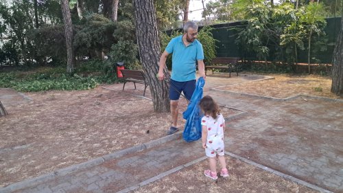 İzmir’de yaşayan duyarlı bir aile, çevre bilincinin küçük yaşta kazanılabileceğine dair örnek bir davranışa imza attı. 2,5 yaşındaki Elif Aden, anne ve babasıyla birlikte gittiği çocuk parkında yalnızca oyun oynamakla kalmadı, parkta temizlik yaparak çevreye duyarlılık konusunda önemli bir mesaj verdi. Ailesiyle birlikte doğaya ve çevreye duyarlı bir birey olarak yetişmesi için çeşitli küçük ama anlamlı aktiviteler yapan minik Elif, parktaki çöpleri toplayarak hem eğlendi hem de çevre temizliğine katkı sağladı. Aile, çocuklara uygulamalı eğitimle örnek olmanın önemine dikkat çekerken, bu küçük çevre hareketinin başka ailelere de ilham olabileceğini düşünüyor. Kızları Elif Aden’e çevre duyarlılığı bilincini erken yaşta kazandırdıklarını belirten anne ve baba, "Toplumda çevre ve doğa bilincinin küçük yaşlarda başladığına inanıyoruz. Elif Aden’e hayvan sevgisi, çevre temizliği ve doğaya saygı gibi konularda farkındalık kazandırmak için günlük hayatımızda basit ama etkili uygulamalar yapıyoruz" dedi.