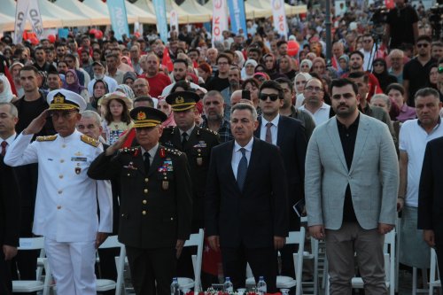 Törende konuşma yapan İzmir Valisi Süleyman Elban, 15 Temmuz gecesinin dünyaya bir ders olduğunu belirtti. Vali Elban, "Öyle bir karanlık geceydi ki bu millet tarihinde böyle bir alçaklığı, böyle bir hainliği hiç yaşamamıştır. Kendisi gibi görünen, kendisi gibi yaşayan, kendisi gibi inandığını ve kendisi gibi bu ülkeye bu millete, bu vatana bağlı olduğunu, hatta bazılarının da peygamber ocağında bu ülkenin en kıymetli ocaklarında görünen Ama niyetlerinin çok farklı olduğunu o gece yapılan hain girişimde fark ettik. Ve yaşadığımız o hayal kırıklığı, yaşadığımız o kırgınlık, yaşadığımız o hainliğin getirdiği travma bizim gönül dünyamızda tarihimizde ve hatıralarımızda kapkara bir leke bıraktık. Ve o gece her şeyden şüphe duymaya başladık. Ve o geceyle birlikte insanların inancına, vatan sevgisine, bayrak sevgisine, ezan sevgisine karşıda bir şüphe ortaya çıkartıldı. Bunun adı kapkara bir fitneydi. Ve bu kara fitne maalesef o gece tarihimize geçmiş oldu. Ama bu hain örgütün elemanları kendilerini sinsice yetiştirenlerin öğrettiği her şeyi sonuna kadar öğrenmişlerdi. Ama onların efendileri, onlara bu milletin vatanına, bayrağına, devletine, inancına ne kadar bağlı olduğunu öğretememişlerdir. Dolayısıyla bu millet söz konusu vatan olduğunda, bayrak olduğunda, inancı olduğunda, ortak değerler olduğunda gözünü kırpmadan, tanklara da, mermilere de, toplara da kafa tutacağını onlar hesaplayamamışlardır. Sayın Cumhurbaşkanımızın büyük liderliği, cesareti ve dirayetiyle, bu millet o gece kurulan her türlü oyunları, her türlü hainliği ve her türlü darbe girişimini canı pahasına, kanı pahasına her türlü fedakarlığı göstererek bertaraf etti çok şükür. Ancak bu destansı mücadele tarihimize bir kahramanlık destanı olarak geçti. Ama bu aynı zamanda 253 şehidimize mal oldu. Ve 3 bine yakın gazimize mal oldu. Bu milletimizin gönlünde travmalara mal oldu. Ama bütün bunlar gösterdi ki tıpkı hain terör örgütü FETÖ onun tüm alçak mensupları gibi bu ülkeye düşmanlık besleyenlere o gece bu millet cevabını verdi. Artık bundan sonra hain FETÖ terör örgütü gibi tüm kötü niyetli örgütler boyunun ölçüsünü aldı. Bu milletle artık kimse boy ölçüşemez. Bu millete kimse tuzak kuramaz. Artık bu millete kimse hainlik edemez Biz de her yıl on beş temmuz akşamı bu meydanlara toplanıyoruz. Toplanıyoruz ki bu o gece yaşanan bu kahramanlık öyküsünü tekrar tekrar hatırlayalım. O kahramanların yaptığı fedakar kahramanlığı bir daha dinleyelim. Bir daha izleyelim. Onlarla gurur duyalım. Onların yaptığı fedakarlığa minnet duyalım, şükran duyalım" dedi.