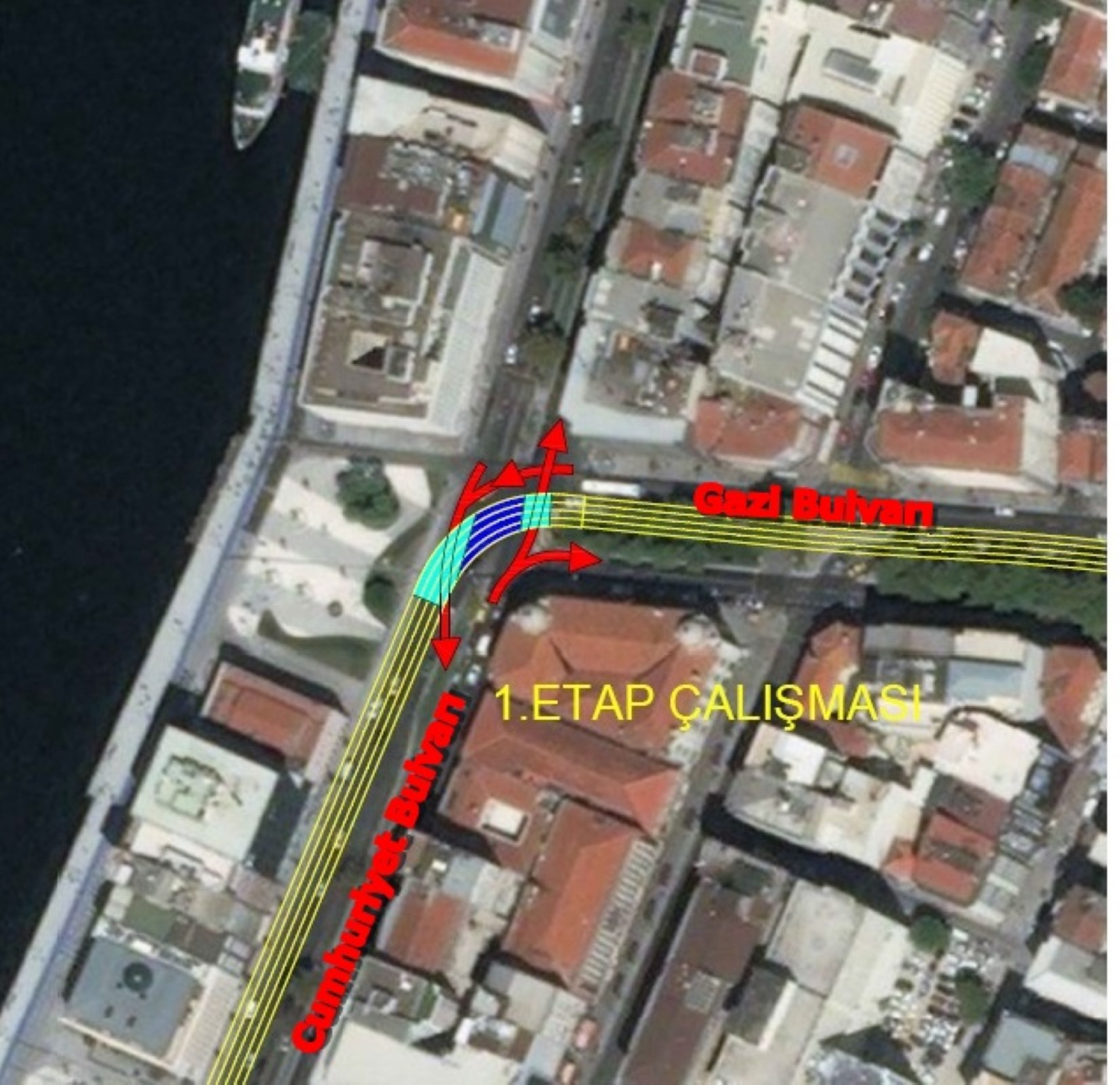 Cumhuriyet Bulvarı'nın Konak Meydan bölgesindeki hat imalatlarının tamamlanmasının ardından, sıra hattın Gazi Bulvarı bağlantısına geldi. Bu kapsamda, bölgede 10 Ağustos 2017 Perşembe günü başlayacak hat imalat çalışmaları sırasında, Cumhuriyet Bulvarı ile Gazi Bulvarı kesişiminde geçici trafik deplasmanı uygulanarak kavşak canlı tutulacak. İki kavşağın kesişme aksında trafik akışı her iki yönden birer şerit halinde sağlanacak.