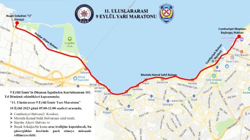 Kentte, 10 Eylül'de düzenlenecek 11. Uluslararası 9 Eylül İzmir Yarı Maratonu nedeniyle ise 05.00-12.00 saatleri arasında Cumhuriyet Bulvarı (2. Kordon), Mustafa Kemal Sahil Bulvarının sahil tarafı, Haydar Aliyev Bulvarı ve Başak Sokak'ın bir kısmı araç trafiğine kapatılacak, bu güzergahlar üzerinde park etmeye müsaade edilmeyecek.