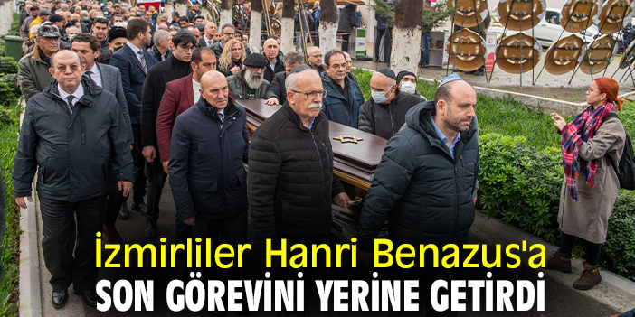 Hanri Benazus için Altındağ Musevi Mezarlığı’nda tören düzenlendi. Törene Benazus’un kızları Fortune Hayim ile Keti Sigura, İzmir Büyükşehir Belediye Başkanı Tunç Soyer ile eşi Neptün Soyer, siyasi partilerin ve sivil toplum örgütlerinin temsilcileri ile çok sayıda seveni katıldı. Benazus, düzenlenen törenin ardından ilahiler eşliğinde toprağa verildi. Hanri Benazus’un ailesine başsağlığı dileyen İzmir Büyükşehir Belediye Başkanı Tunç Soyer, “Atatürk aşığı bir insandı. İzmir için çok büyük bir kayıp. Çok üzgünüz. İsmini yaşatacağız” dedi.