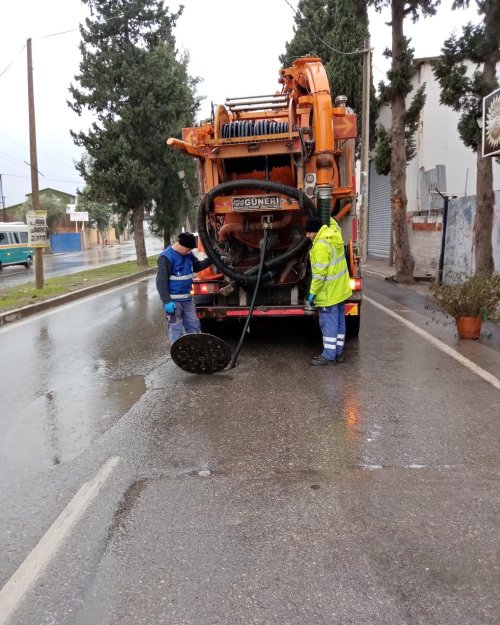 MEDYA EGE - İzmir Büyükşehir Belediyesi'ne bağlı İZSU ekipleri, sabahın erken saatlerinden beri etkili olan yağmura karşı harekete geçti.