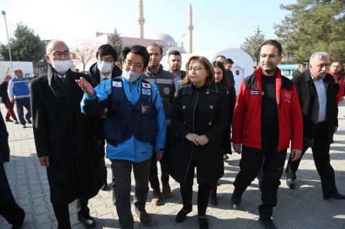Gaziantep Büyükşehir Belediye Başkanı Fatma Şahin, deprem sonrası Gaziantep Oğuzeli'nde Japon ekip tarafından Türkiye’de kurulan en büyük sahra hastanesindeki çalışmaları inceledi.