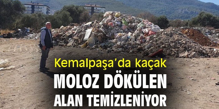 Kemalpaşa'da kaçak moloz dökülen alan temizleniyor