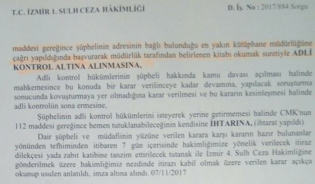 Kararını katibe yazdıran Hakim Berber, sanığın adli kontrol şartlarını isteyerek gerine getirmemesi halinde ise tutuklanacağının kendisine hem sözlü olarak bildirdi, hem de kararın sonuna ilave olarak yazdırdı.