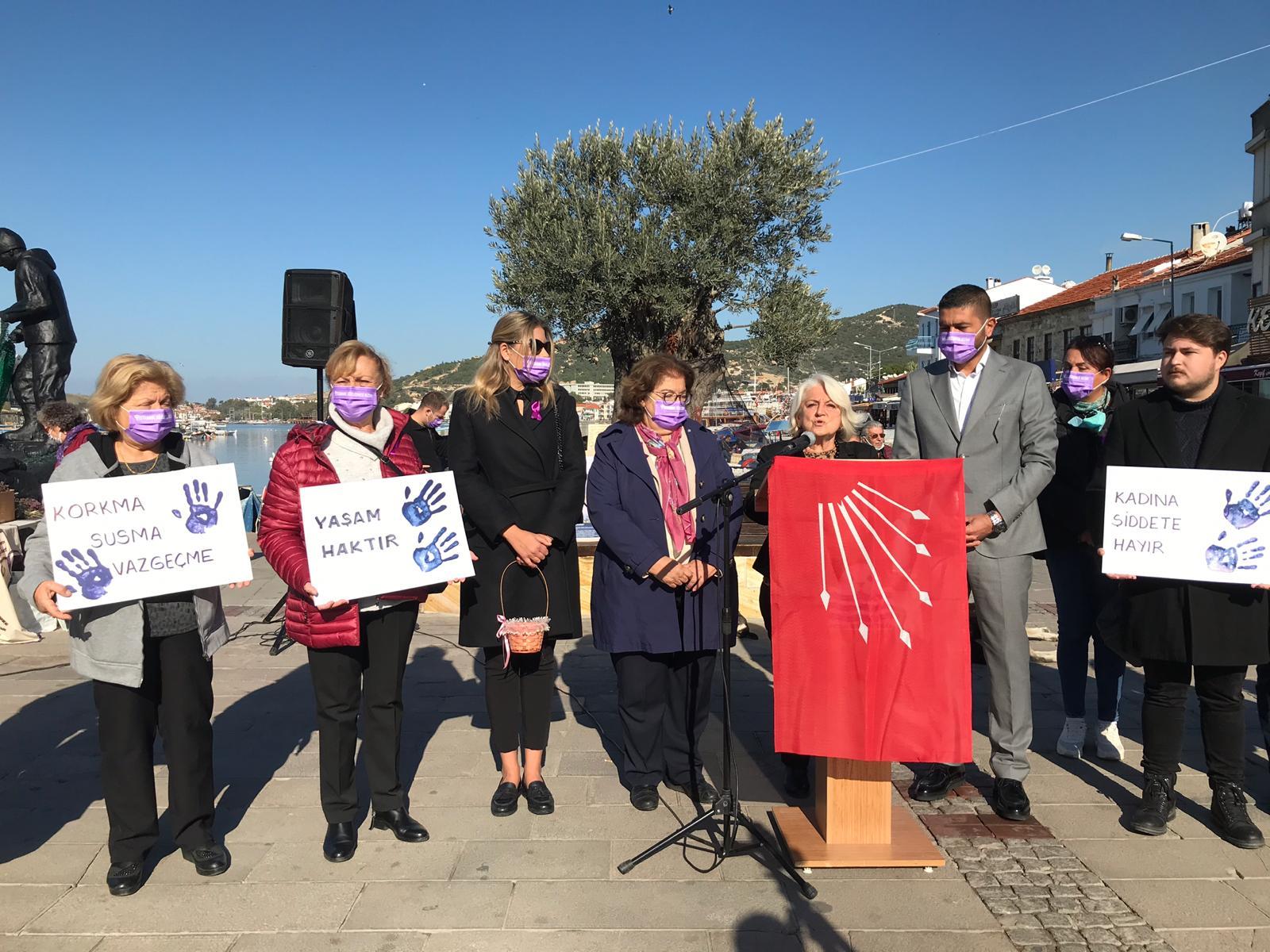 CHP Foça Kadın Kolları, 25 Kasım Kadına Yönelik Şiddete Karşı Uluslararası Mücadele Günü dolayısıyla Demokrasi Meydanı’nda basın açıklaması yaptı