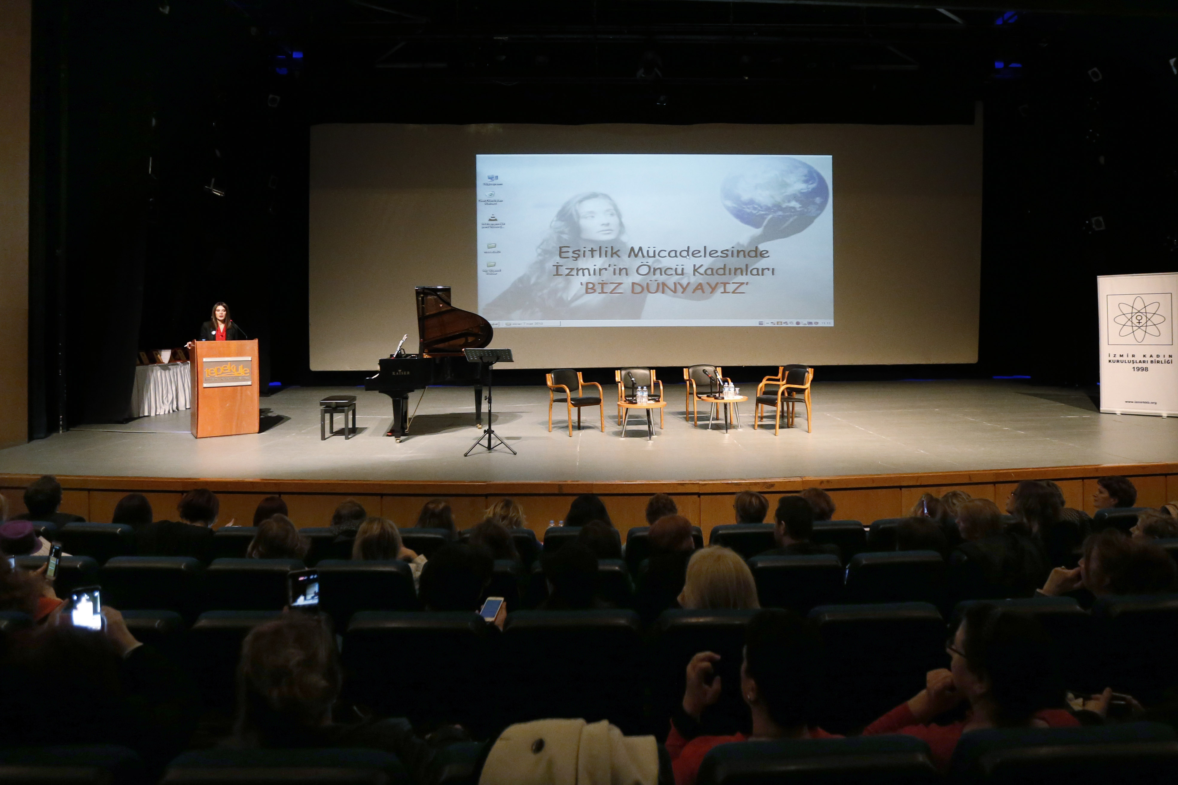 Konak Belediye Başkanı Sema Pekdaş, 8 Mart Dünya Kadınlar Günü kapsamında İzmir’in öncü kadınları tarafından düzenlenen ‘Biz Dünyayız’ adlı etkinlikte konuştu.