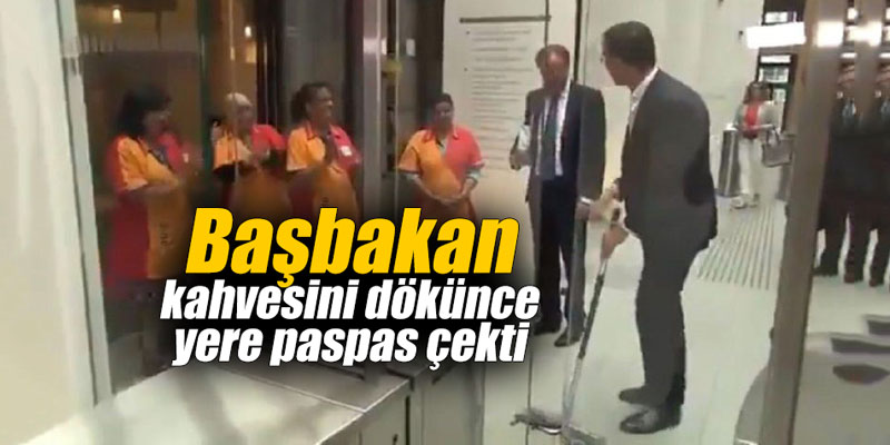 Başbakan kahvesini dökünce yere paspas çekti