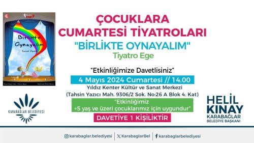 MEDYA EGE - Kültür ve sanata verdiği önem doğrultusunda bu alanda çalışmalarına devam eden Karabağlar Belediyesi, 'Birlikte Oynayalım' adlı çocuk oyununa ev sahipliği yapacak.