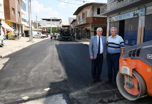 Modern asfaltlama araçlarıyla 5760 Sokak'ta çalışan ekipleri denetleyen Karabağlar Belediye Başkanı Muhittin Selvitopu, bölgede oturan vatandaşlar ve esnafla da sohbet etti.