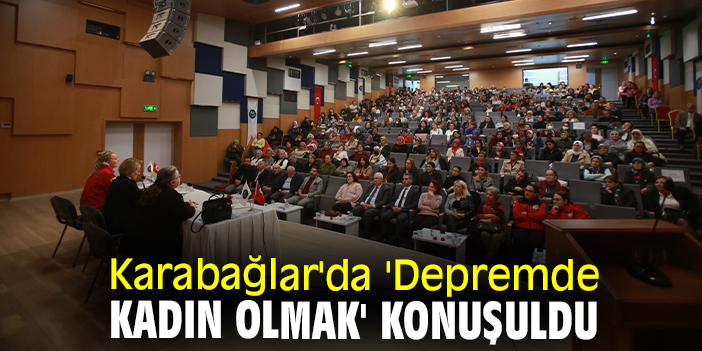 Karabağlar Belediyesi'nin 8 Mart Dünya Emekçi Kadınlar Günü etkinlikleri kapsamında Yıldız Kenter Kültür ve Sanat Merkezi'nde 'Depremde Kadın Olmak' yapılan konulu panele kadınların yoğun ilgi gösterdi.