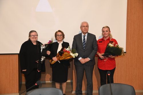 Başkan Selvitopu panelin sonunda Karabağlar Kent Konseyi Başkanı Ağrı ve panelistlere doğa dostu sertifika ve çiçek vererek teşekkür etti.