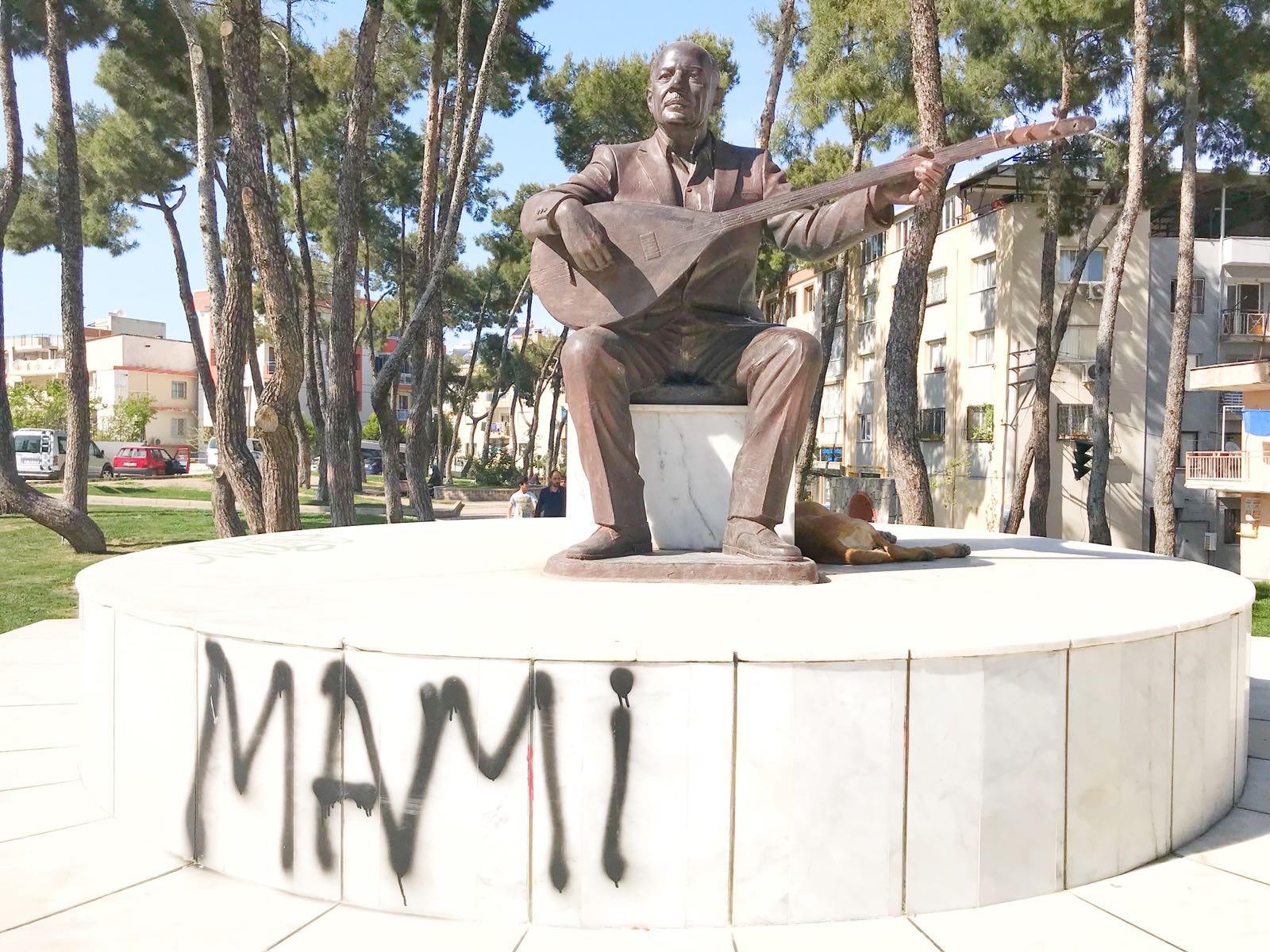 Karabağlar'da Neşet Ertaş'ın heykeli yazı tahtasına döndü