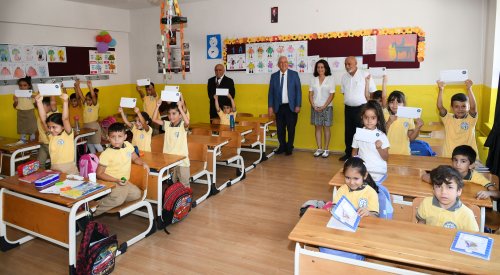 Başkan Selvitopu, fedakarca görev yapan öğretmenleri de yürekten kutlayarak, onlara çalışmalarında başarılar dileyerek öğrencilere tek tek Eğitim Kart'larını dağıttı. Daha sonra onlarla anı fotoğrafı çekildi.