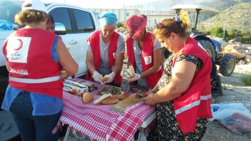 Türk Kızılay Urla, Kızılay Kadın Urla, Genç Kızılay Urla ve Kızılay Urla Engelsiz Kulüp gönüllüleri, sandviçlerin yapımı için ekmek, kaşar peyniri, sandviçleri sarmak için streç film, kağıt havlu, ıslak mendil, maske, kafa lambası, battaniye, soğuk su ve ayran için buz, yangın alanında çalışan orman işçilerine gıda ve su aktarımı yapabilmek ve çıkan çöplerin toplanabilmesi için büyük boy çöp torbası, buzların konulabilmesi için yeni büyük çöp kutusu getirdiler.
