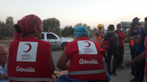 Karaburun İlçesi Küçükbahçe Karareis mevkiinde çıkan ve ardından Urla Balıklıova'ya sıçrayan orman yangınında Türk Kızılay Urla, Kızılay Kadın Urla, Genç Kızılay Urla ve Kızılay Urla Engelsiz Kulüp üyeleri ve gönüllüleriyle destek sağlıyor.