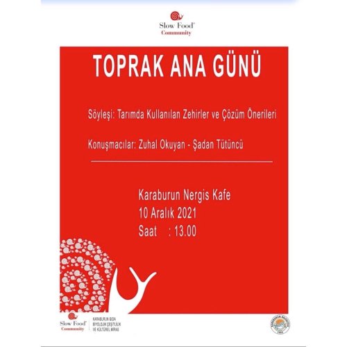 Slow Food hareketinin kuruluş yıldönümü olan 10 Aralık “Toprak Ana Günü”nde, “Tarımda Kullanılan Zehirler ve Çözüm Önerileri” söyleşisi, Karaburun'da gerçekleşecek.