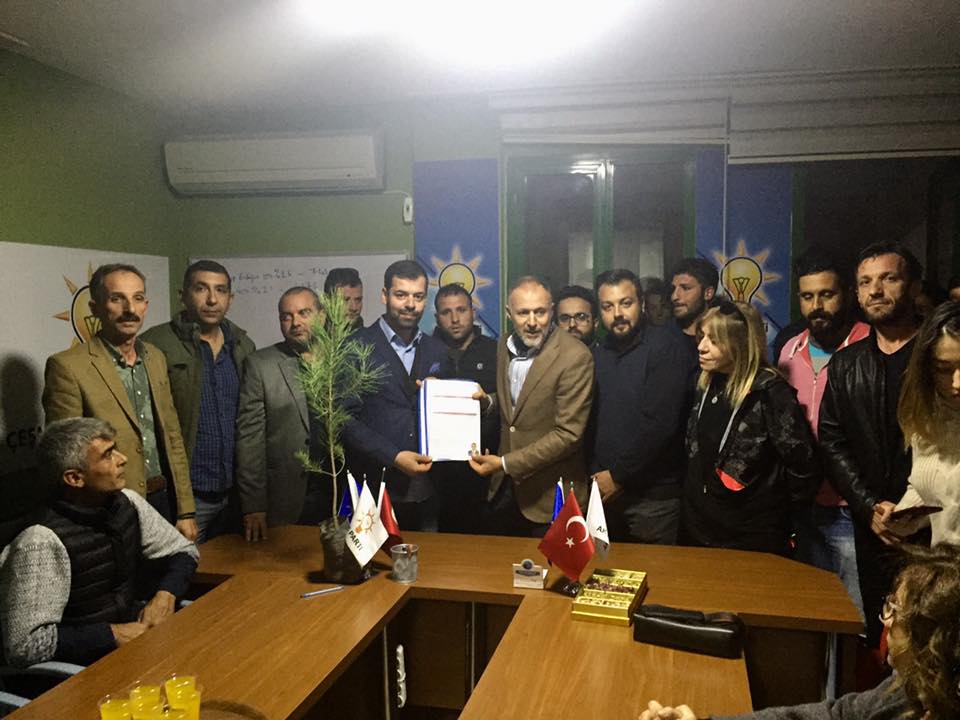 Başvuru sonuna saatler kala Arif Barata, AK Parti Çeşme İlçe Başkanlığına, belediye başkanlığına aday adaylığı başvurusunu yaptı.