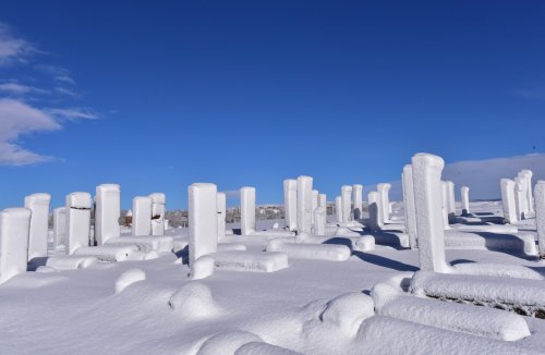 UNESCO Dünya Kültür Mirası geçici listesinde yer alan dünyanın en büyük Türk İslam Mezarlığı olma özelliğine sahip Ahlat Selçuklu Meydan Mezarlığı'ndaki tarihi mezar taşlarının karla bütünleşmesi görenleri kendine hayran bırakıyor. 'Anadolu’nun Orhun Abideleri' olarak da adlandırılan 210 dönüm alanda kurulu Ahlat Selçuklu Meydan Mezarlığındaki mezar taşının üzerindeki yazılar, kabartmalar, nakış ve işlemeler, karla bütünleşince seyrine güzel görüntüler oluştururken ziyaretçilerden de yoğun ilgi görüyor.