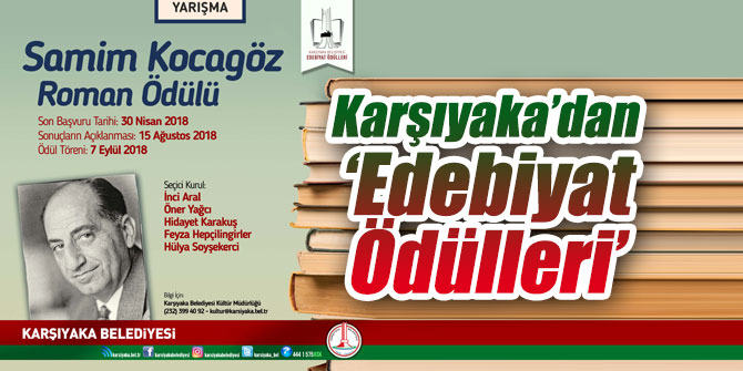 Bu yıl ilk kez gerçekleşecek olan Karşıyaka Edebiyat Ödülleri, vatandaşları sanata yönlendirmek ve teşvik etmek amacını taşıyacak. Kalemine güvenen her katılımcı, bu yıl Samim Kocagöz’ün adını taşıyan ve roman dalında gerçekleşecek olan yarışma için 30 Nisan 2018 tarihine kadar başvuruda bulunabilecek. Yarışmanın seçici kurulunda ise İnci Aral, Öner Yağcı, Hidayet Karakuş, Feyza Hepçilingirler ve Hülya Soyşekerci bulunacak. Ödülün kazananına 8 bin lira ödül verilecek. Ödül töreni 7 Eylül 2018 tarihinde gerçekleştirilecek. Ayrıntılı bilgi belediyenin resmi web sitesi üzerinden alınabilecek.