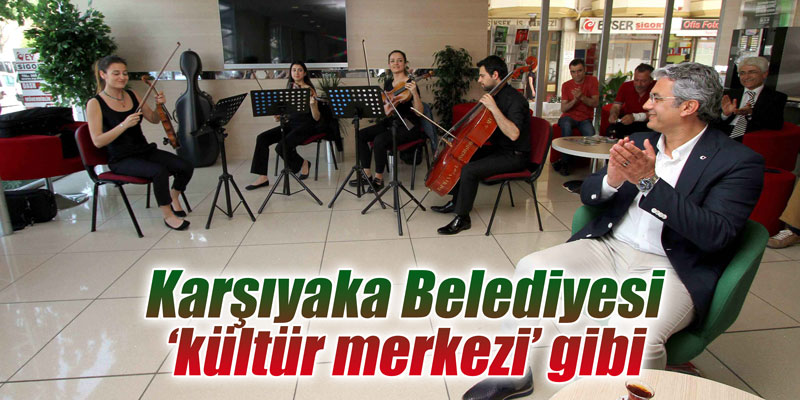 Karşıyaka Belediyesi, ana binasında sunduğu hizmetleri rutin belediyecilik anlayışının dışına taşıyarak, yıl boyunca on binlerce kişiyi kültür ve sanatla buluşturuyor. Binanın giriş katında oluşturulan sanat galerisinde, resim ve fotoğraf başta olmak üzere çeşitli alanlarda düzenli olarak sergiler açılıyor. Karşıyaka Belediyesi Oda Orkestrası’nın genç sanatçıları, çarşamba günleri müzik dinletisi sunuyor. Pek çok kişi belki de ilk kez canlı olarak klasik müzik dinleme imkanı buluyor.