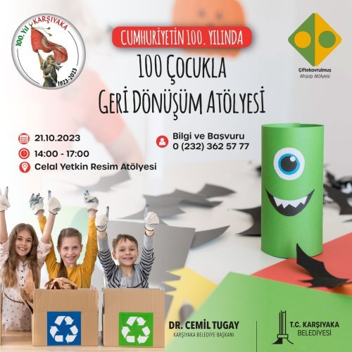 Karşıyaka Belediyesi, Cumhuriyet'in 100.yılında 100 çocuğu, geri dönüşüm atölyesinde buluşturacak.