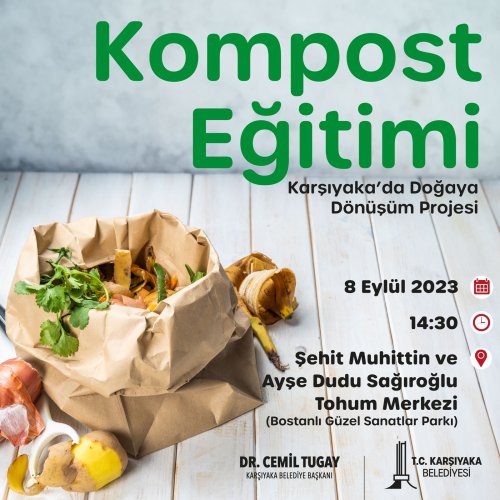 Karşıyaka Belediyesi tarafından kompost eğitimine ilişkin yapılan paylaşımda, "Ekonomi ve çevreye büyük katkı sağlayan kompostu evimizde üreterek organik atıklarımızı yeniden değerlendirecek, evsel atıklarımızı azaltacağız. 8 Eylül 2023 Cuma günü saat 14.30'da Şehit Muhittin ve Ayşe Dudu Sağıroğlu Tohum Merkezi'nde gerçekleşecek kompost eğitimine kayıt gerekmeksizin tüm Karşıyakalıları bekliyoruz" ifadelerine yer verildi.