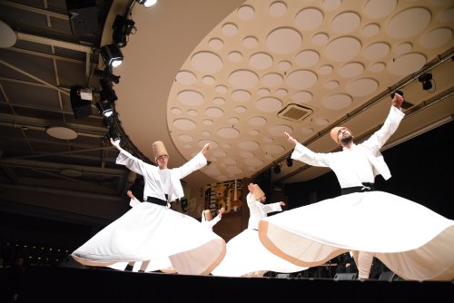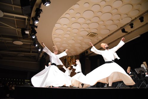 Karşıyaka Halk Eğitimi Merkezi öğretmenleriden oluşan Semazen ekibi, Tasavvuf Müziği eşliğinde Semazen gösterisi yaptı. Beş farklı eser icra eden Semazen ekibini salondakiler ayakta alkışladı.