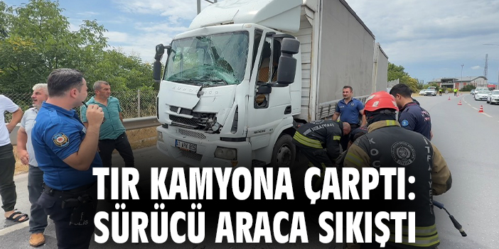 Tır kamyona çarptı: Sürücü araca sıkıştı