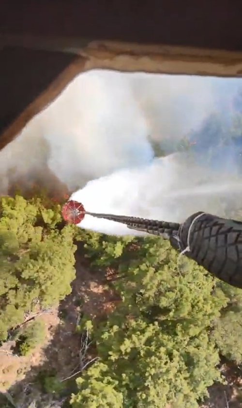 İhbar üzerine bölgeye İzmir Orman Bölge Müdürlüğüne bağlı 4 uçak 6 helikopter, 15 arazöz, 4 su ikmal ve 3 dozer sevk edildi. Ekiplerin alevlerle mücadelesi havadan ve karadan devam ediyor.