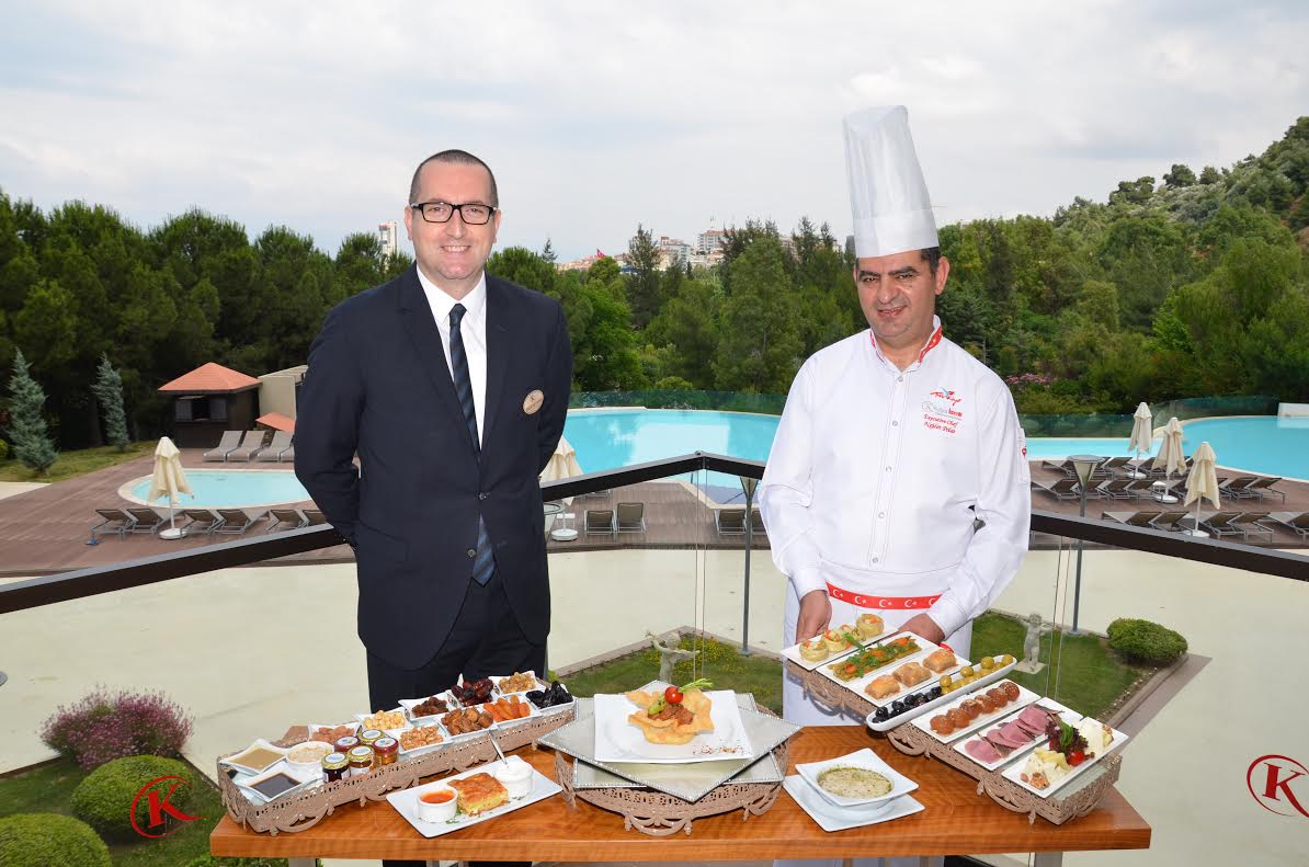 Ramazan ayına özgü geleneksel tatlardan oluşan zengin açık büfesinde Otel Baş Aşçı Nejdet Polat ile Otel Yiyecek –İçecek Müdürü Timur Yurtseven ve ekibinin hazırladığı iftariyeliklerden çorbalara, ara sıcaklardan ana yemeklere kadar Türk – Osmanlı Mutfağı’nın seçkin lezzetleri yer alıyor. Ege Usulü Tarhana Çorbası, Tereyağlı Mercimek Çorbası, Peynirli Su Böreği, Kıymalı Gül Böreği, Saray usulü İncik Kebabı, Zerdeçallı Soğan Dolması, Piliç İslim Kebap, Piliç Şehzade, Saray Usulü Kuzu Sarma, Kekikli Kuzu Tandır, Sakızlı Muhallebi, Fıstıklı Güllaç,Türk Tatlı Tabağı ve daha birçok lezzet ile iftarlar bir lezzet şölenine dönüşüyor.