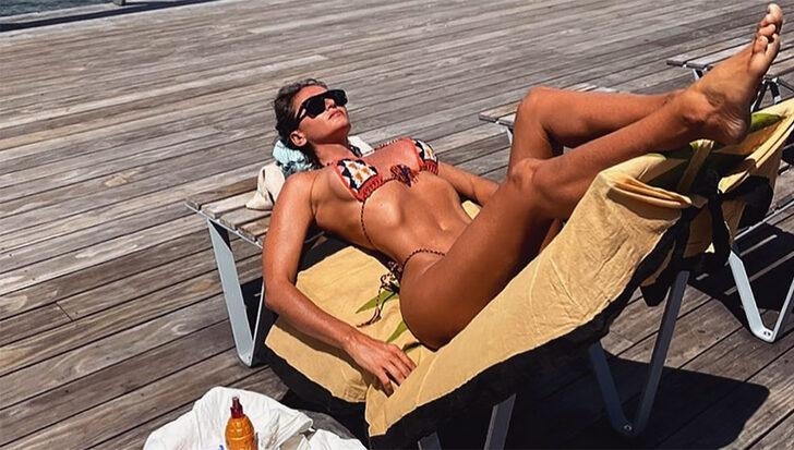 Bozcaada'da bronzlaşmaya devam eden Eda Taşpınar, kayalıklar arasında bikinisiyle verdiği pozla çok konuşuldu.