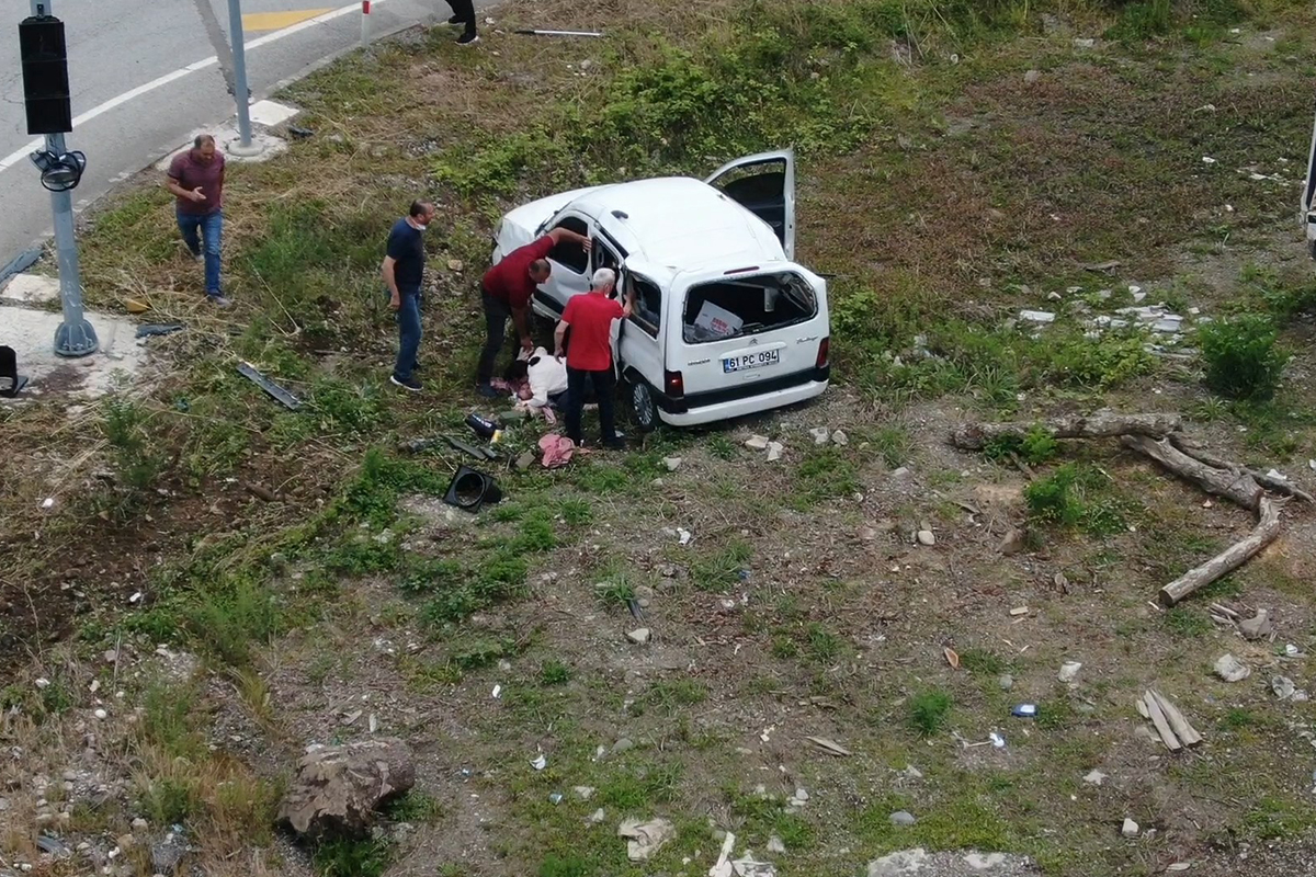 Kaza anı drone kamerasına yansıdı. Görüntülerde kontrollü geçiş yapmaya çalışan hafif ticari araç, dönel kavşaktan gelen çekiciye çarpmamak için son anda sağ yöne ani dönüş yaparken yol kenarındaki bariyerlere çarparak takla atmaktan son anda kurtuldu. Trafikteki diğer vatandaşlar hızlı bir şekilde araçta bulunanların yardımına koştu.