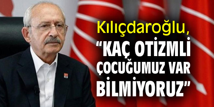 Cumhuriyet Halk Partisi (CHP) Genel Başkanı Kemal Kılıçdaroğlu, “Üzülerek ifade edeyim, kaç otizmli çocuğumuz var bilmiyoruz. Görünmüyor bu aileler. Normalde bunların saptanması lazım” diye konuştu.