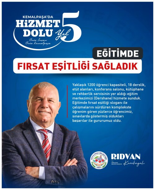 Kemalpaşa Belediye Başkanı Rıdvan Karakayalı, eğitim merkezleri ile eğitimde fırsat eşitliği sağladıklarına dikkat çekerek “Eğitim kompleksinde öğrenim gören yüzlerce öğrencimiz, sınavlarda göstermiş oldukları başarılar ile gururumuz oldu” dedi.