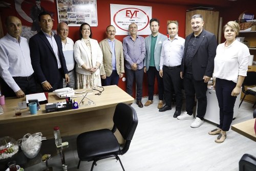 3. Bölge Eczacı Odası Başkanı Tuncay Sayılkan, İzmir Emeklilikte Yaşa Takılanlar Sosyal Yardımlaşma Derneği Başkanı Doğan Türker ile İzmir Serbest Muhasebeci Mali Müşavirler Odasında Başkanı Ertuğrul Davudoğlu, Başkan Sürekli’ye ziyaretinden dolayı teşekkür etti. Başkanı Türker, Başkan Sürekli‘nin siyasi partilerin İl Başkanları düzeyinde, kendilerini ilk ve tek ziyaret eden başkan olduğunu ve ziyaretten büyük mutluluk duyduğunu söyledi. Meslek odalarının siyaset üstü yapılar olduğunu ve mesleki konuları dile getirmelerindeki öneme vurgu yapan Başkan Sürekli, “Emeklilikte yaşa takılanlarla ilgili çalışma yürütüldüğünü, yıl içinde bir çözüme kavuşturulacağını söyledi. Bize ulaştırılan talepleri görmezden gelmedik, umut vermedik ama çözüm üretmek için de ne gerekiyorsa yaptık, yapmaya da devam edeceğiz.” diye konuştu.